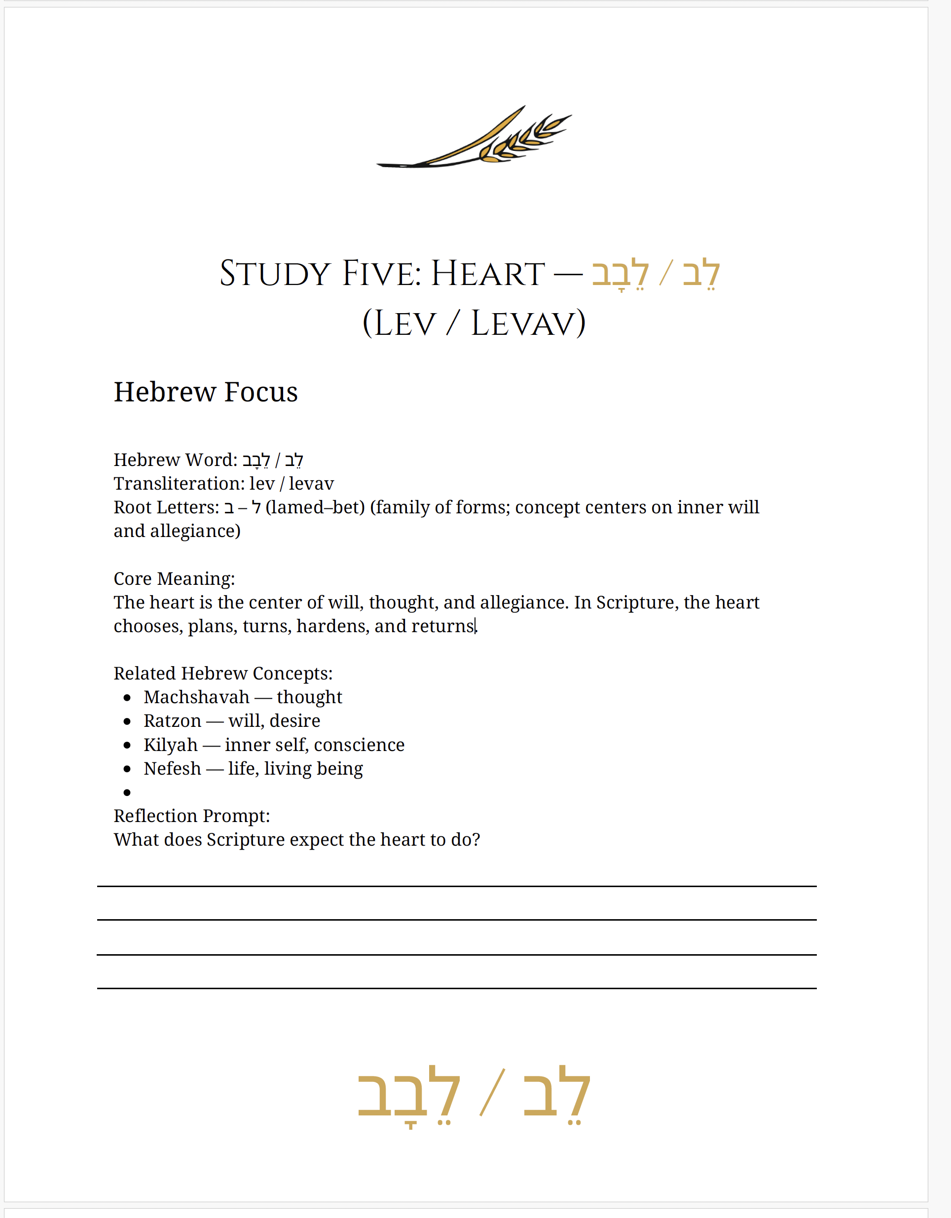 Lev—The Heart is the Center Hebrew Mar 30 Written By Suzi Wollman There is a much more detailed study in my TrueWoven Printables Store on Etsy Subscribe Sign up with your email address to receive news and updates. Email Address Sign Up We respect your privacy. Thank you! HebrewHebrew Study Suzi Wollman https://www.onceandfuturehomestead.com
